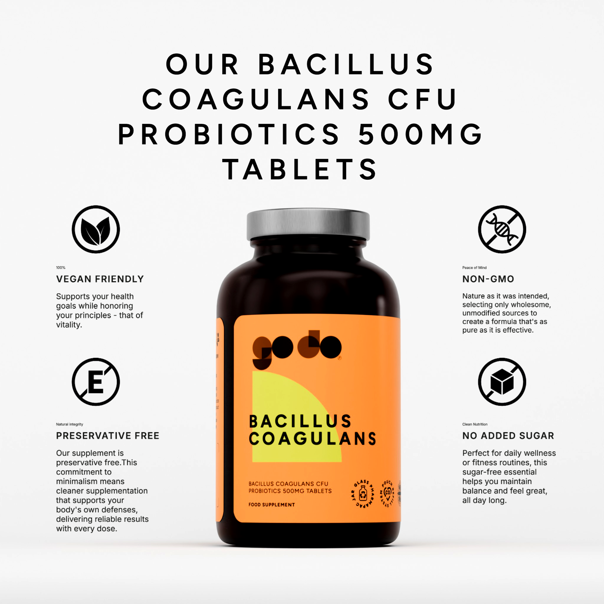 • 500mg Bacillus Coagulans per tablet