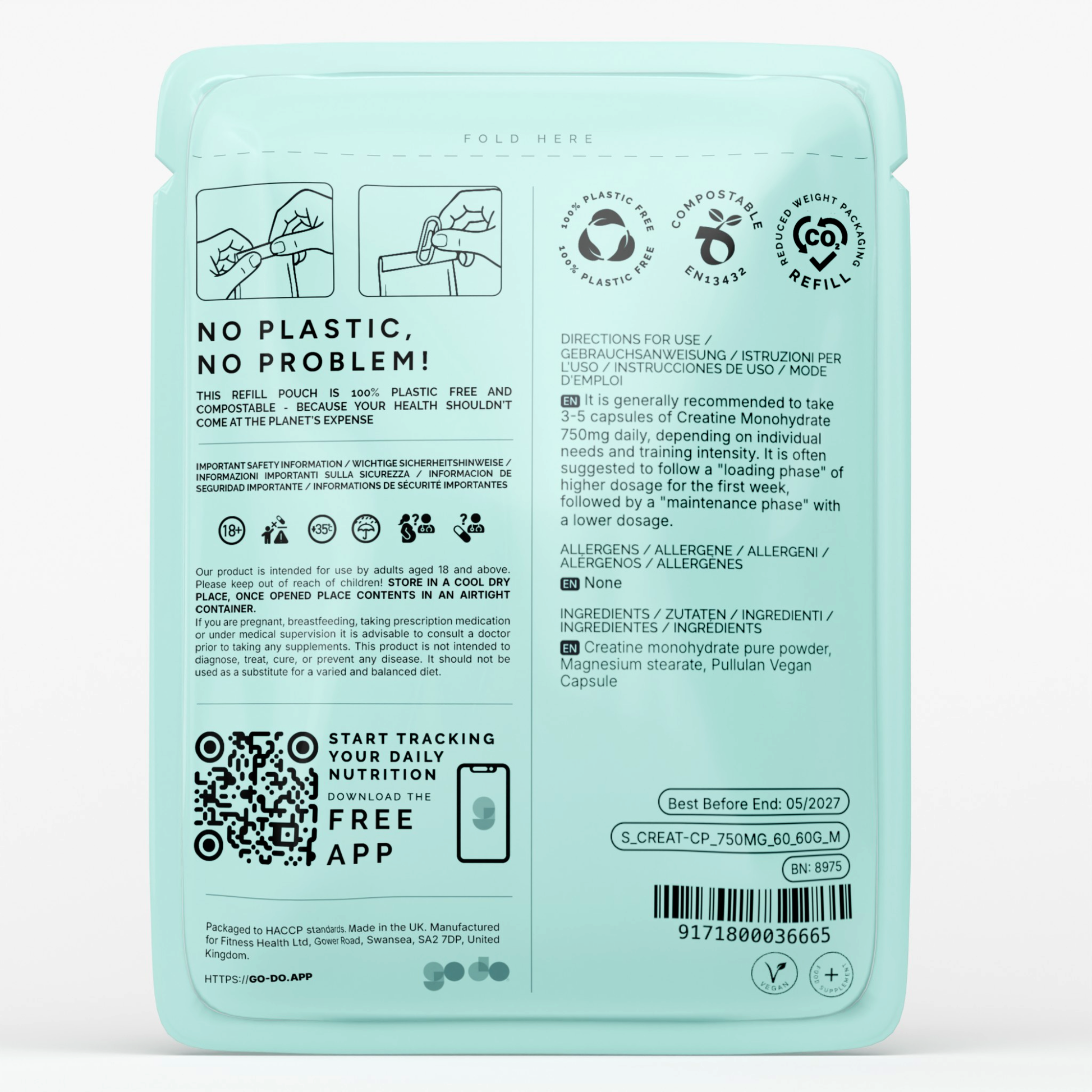 Our Creatine Monohydrate 750mg Capsules are rigorously tested for purity and potency. Produced and packed by Fitness Health, a family-run business in South Wales, these capsules are delivered in either a Compostable Pouch and/or a Recyclable Glass Bottle to ensure freshness and convenience.
