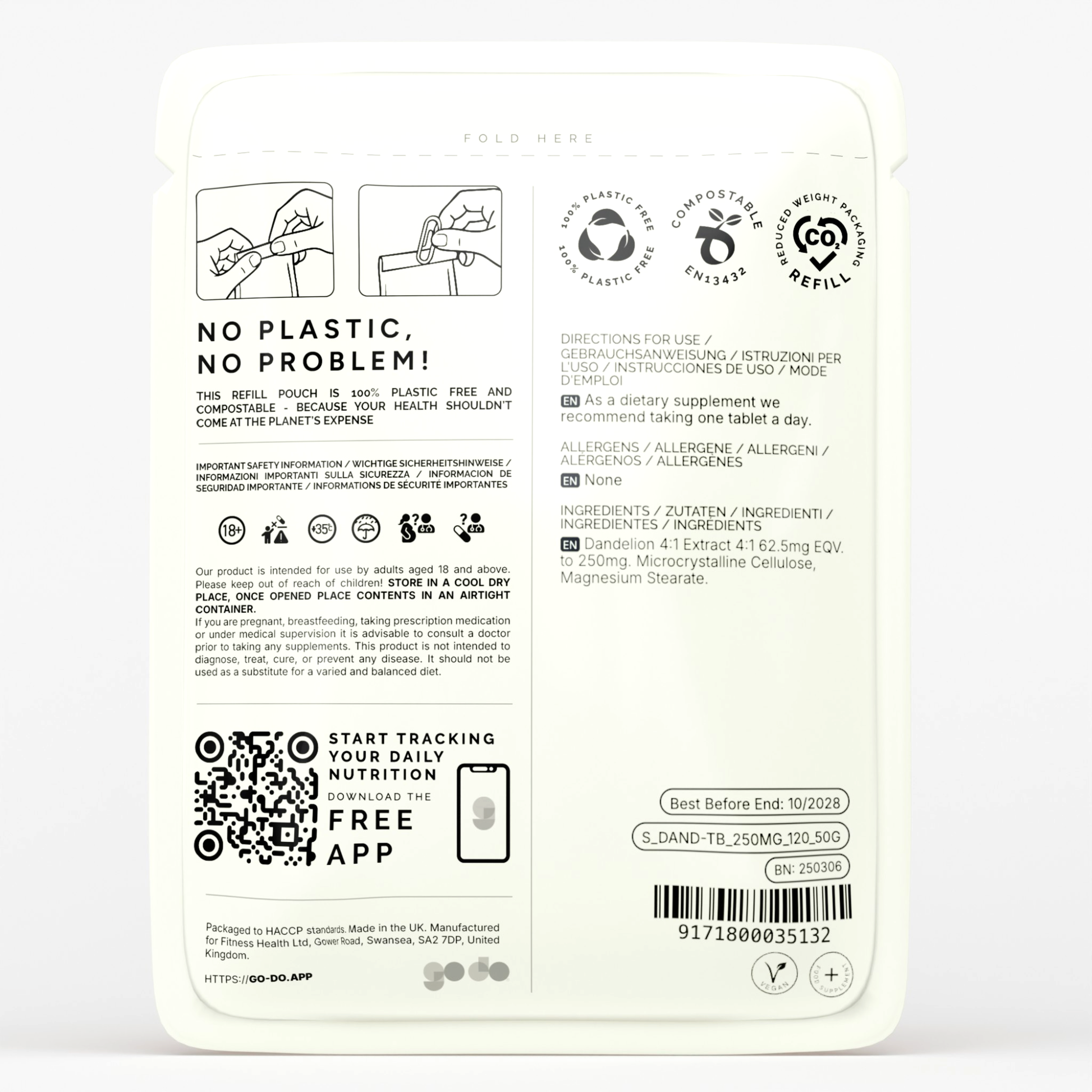 Our Dandelion Root Extract Tablets are rigorously tested for purity and potency. Produced and packed by Fitness Health, a family-run business in South Wales, these tablets are delivered in either a Compostable Pouch and/or a Recyclable Glass Bottle to ensure freshness and convenience.