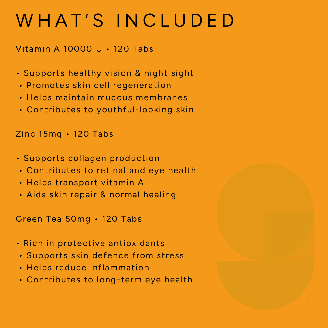 Take a comprehensive approach to your visual and dermal wellness with our Skin & Vision Bundle, supporting your body's natural harmony for clear sight and radiant skin.