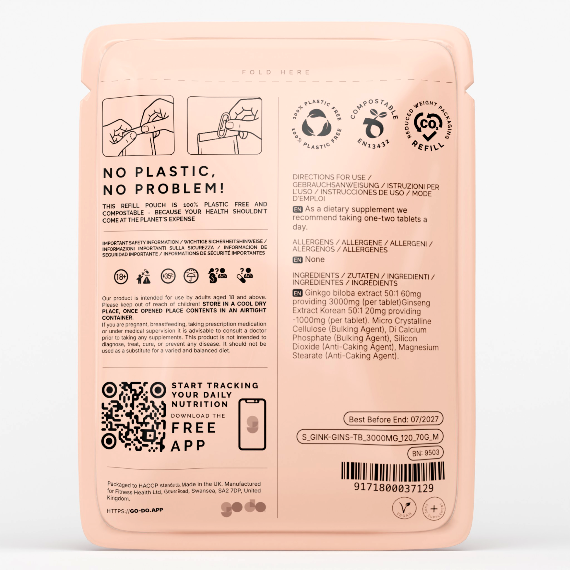 Our Ginkgo Biloba 3000mg with Ginseng 1000mg tablets are rigorously tested for purity and potency. Produced and packed by Fitness Health, a family-run business in South Wales, these tablets are delivered in either a Compostable Pouch and/or a Recyclable Glass Bottle to ensure freshness and convenience.