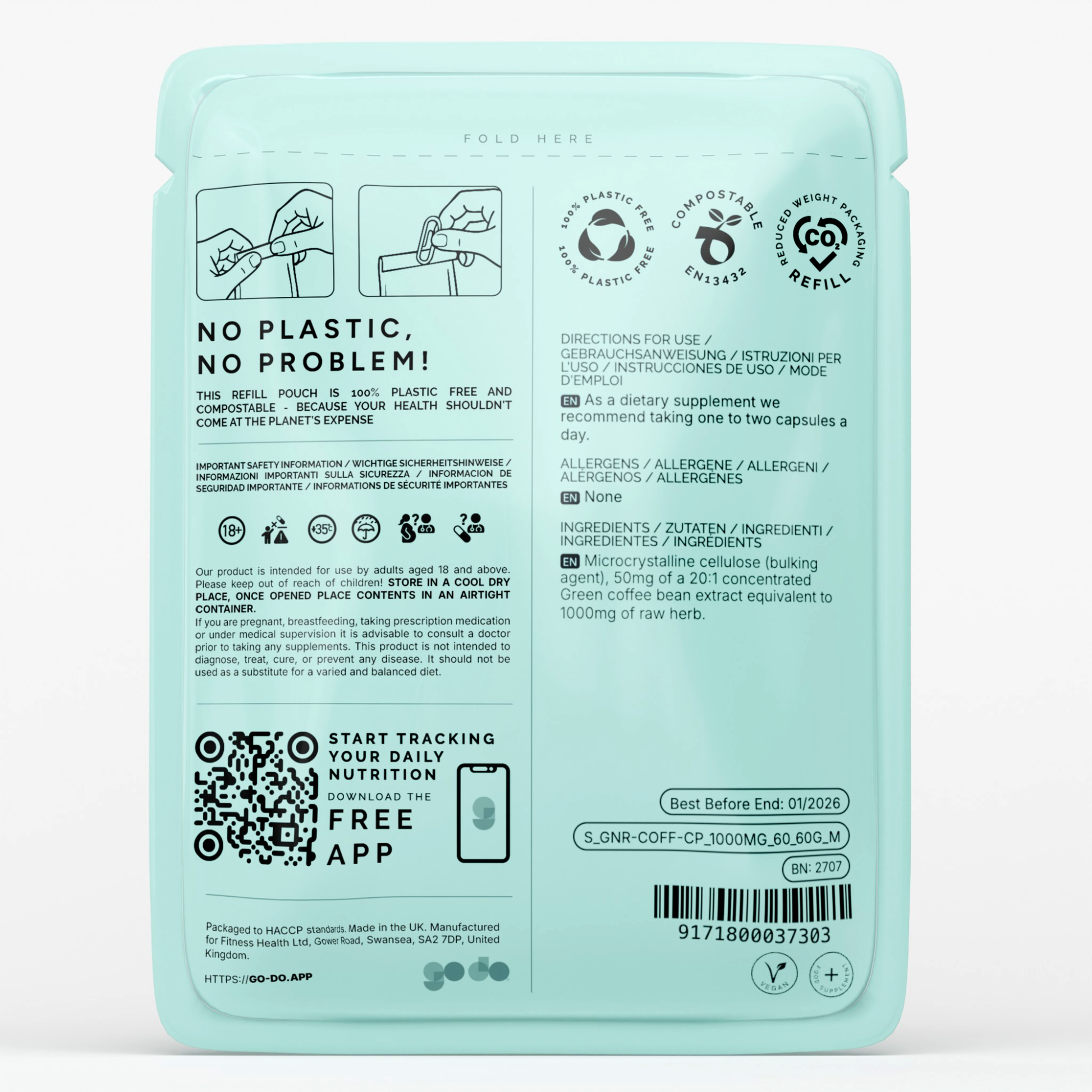 Our Green Coffee Bean Extract 1000mg Capsules are rigorously tested for purity and potency. Produced and packed by Fitness Health, a family-run business in South Wales, these capsules are delivered in either a Compostable Pouch and/or a Recyclable Glass Bottle to ensure freshness and convenience.