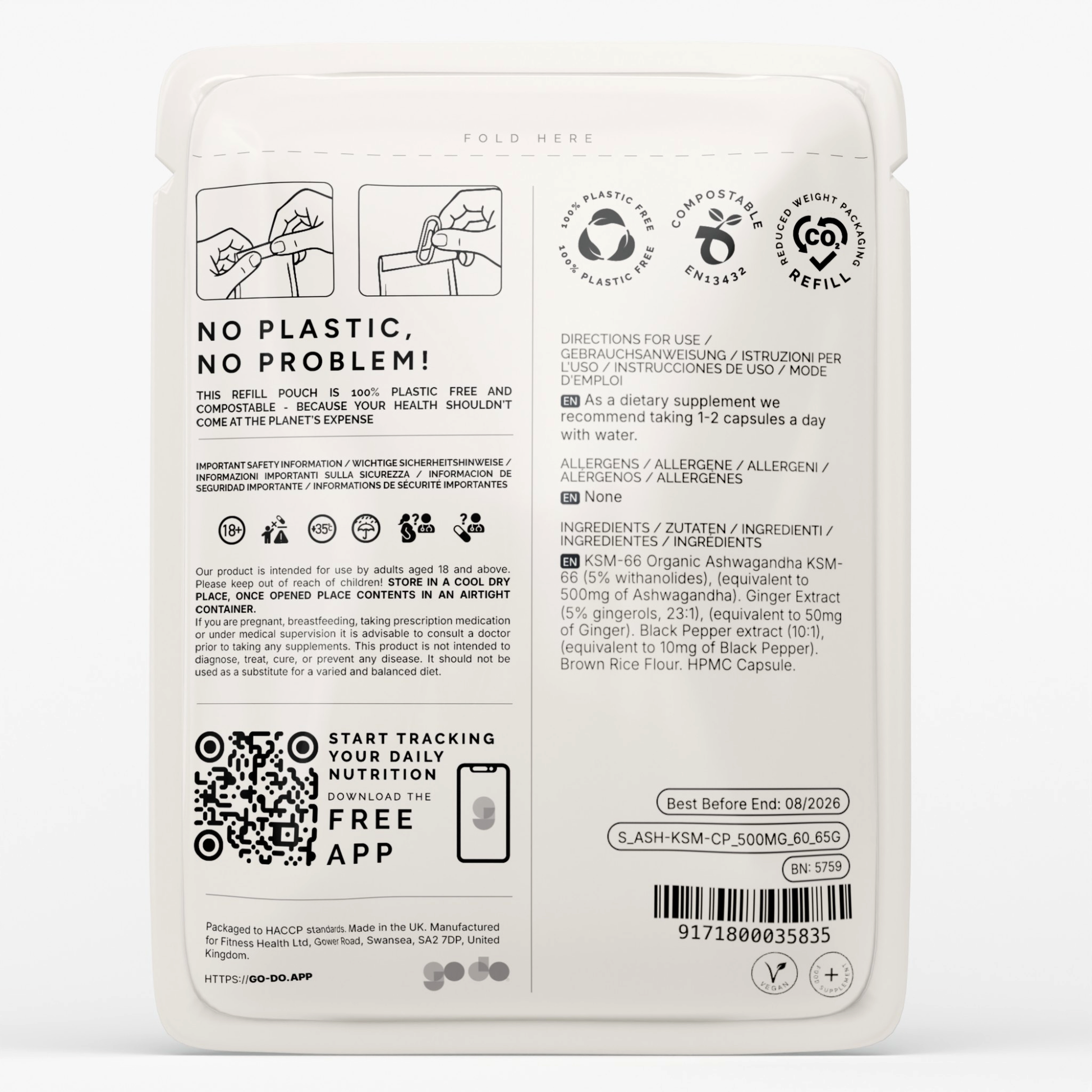 Our Ashwagandha KSM-66 3-in-1 Complex is rigorously tested for purity and potency. Produced and packed by Fitness Health, a family-run business in South Wales, these capsules are delivered in either a Compostable Pouch and/or a Recyclable Glass Bottle to ensure freshness and convenience.