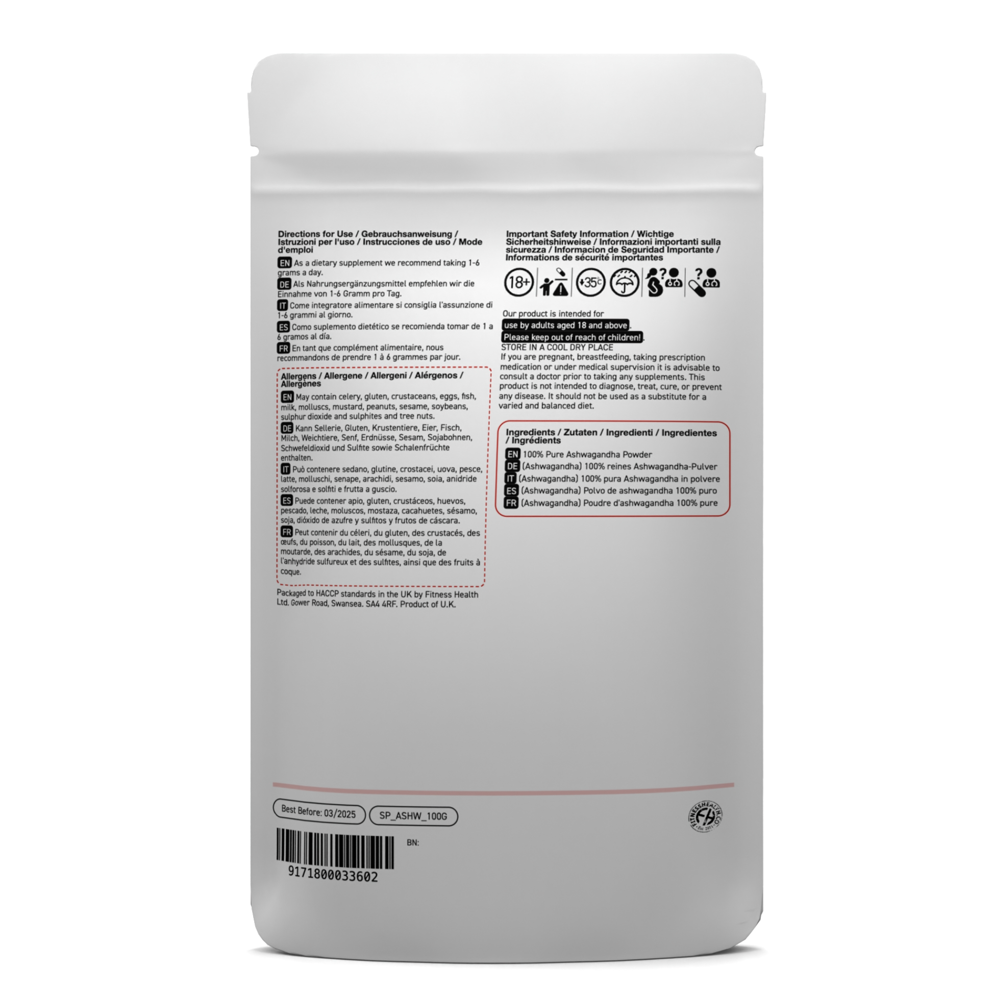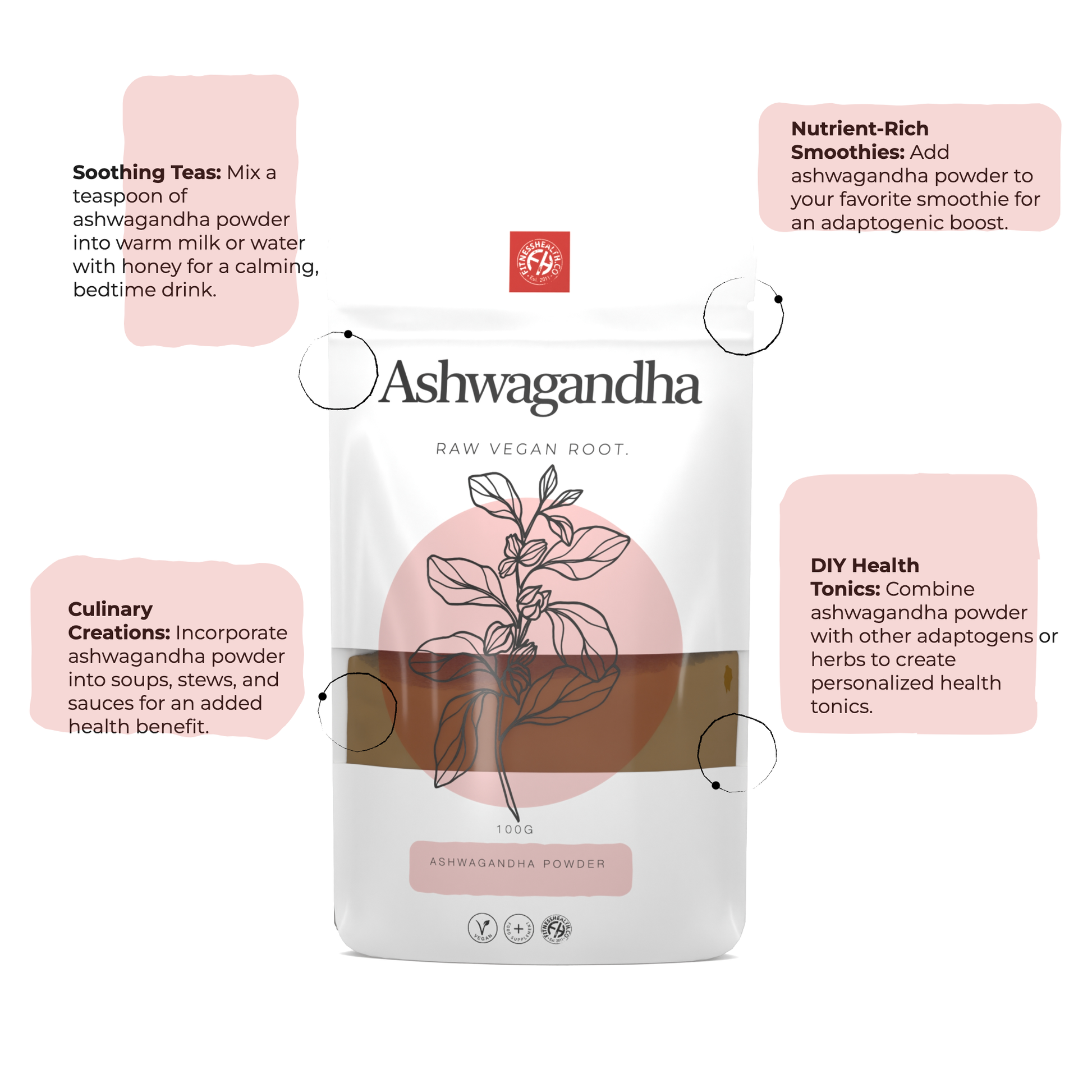 - 100% pure ashwagandha root powder (Withania somnifera)